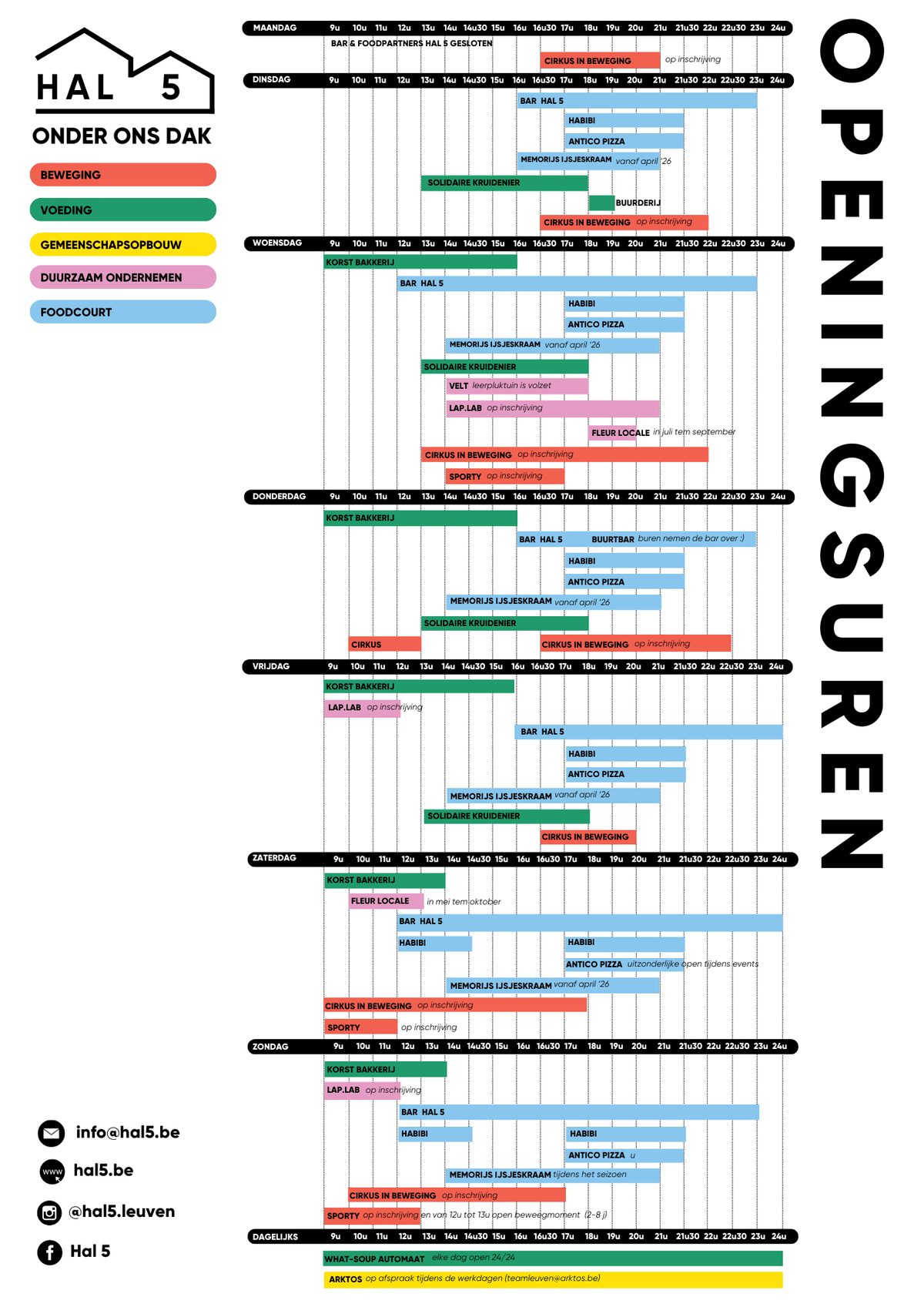 Klik HIER voor de openingstijden van alle partners in Hal 5.